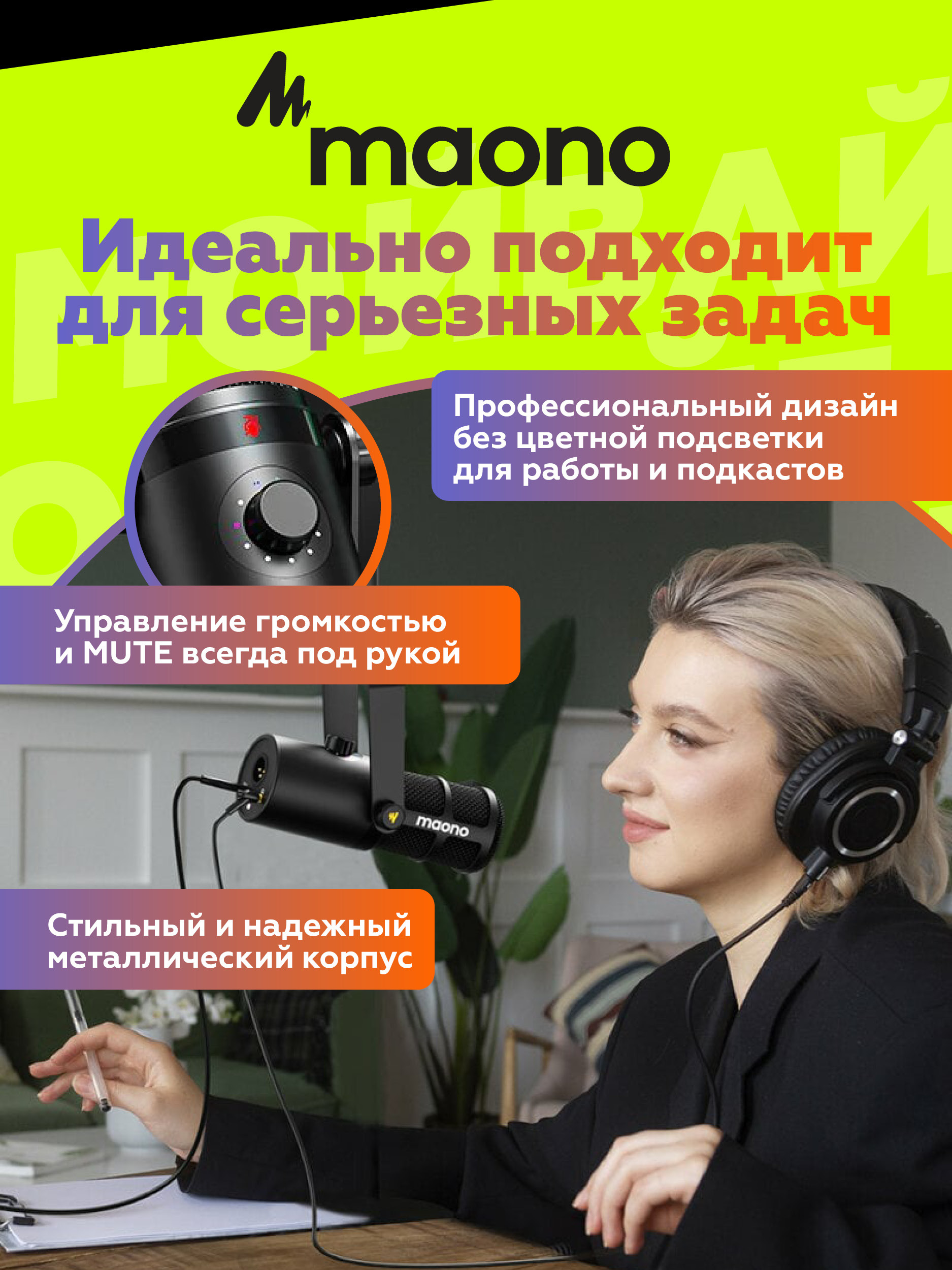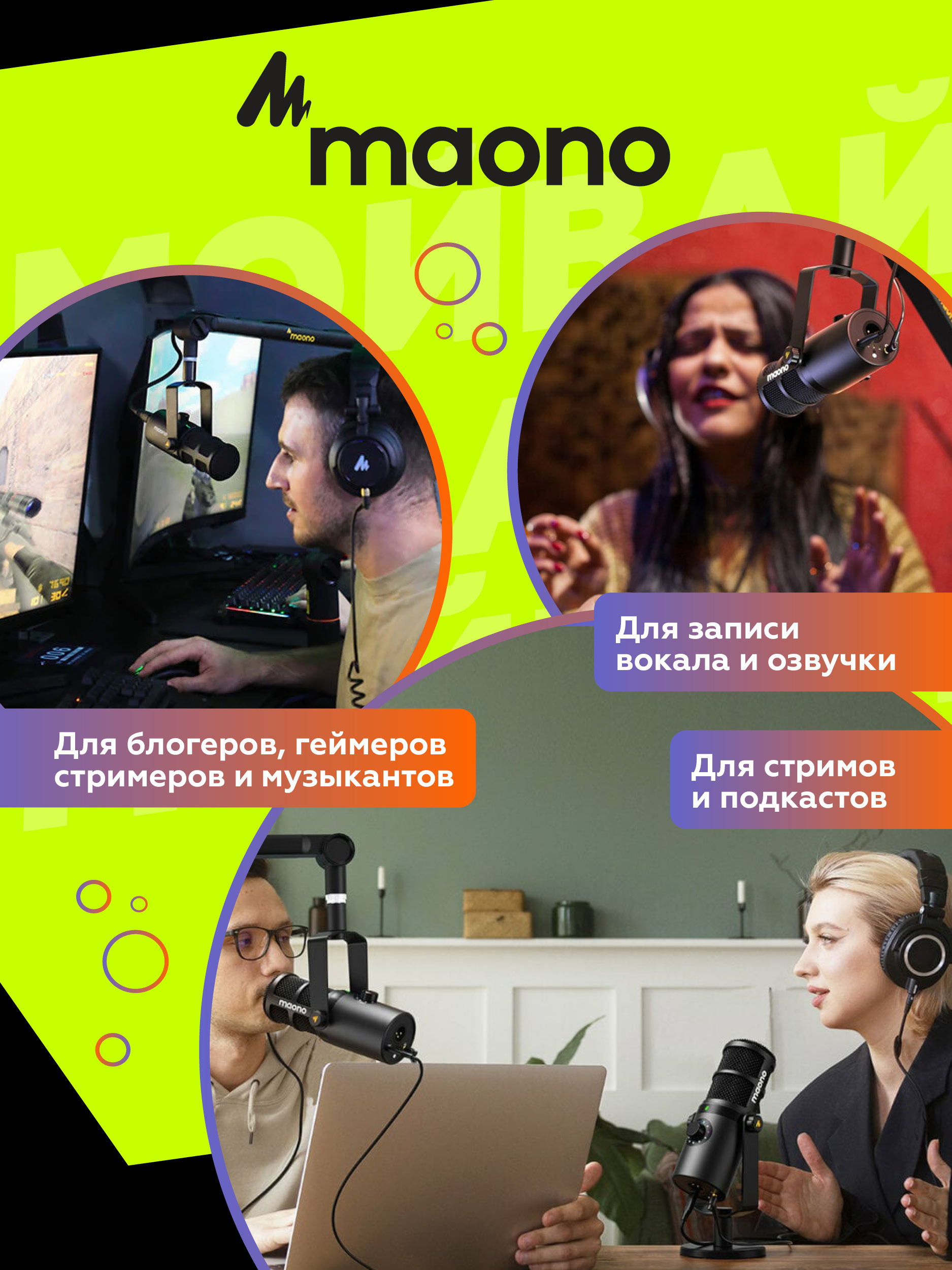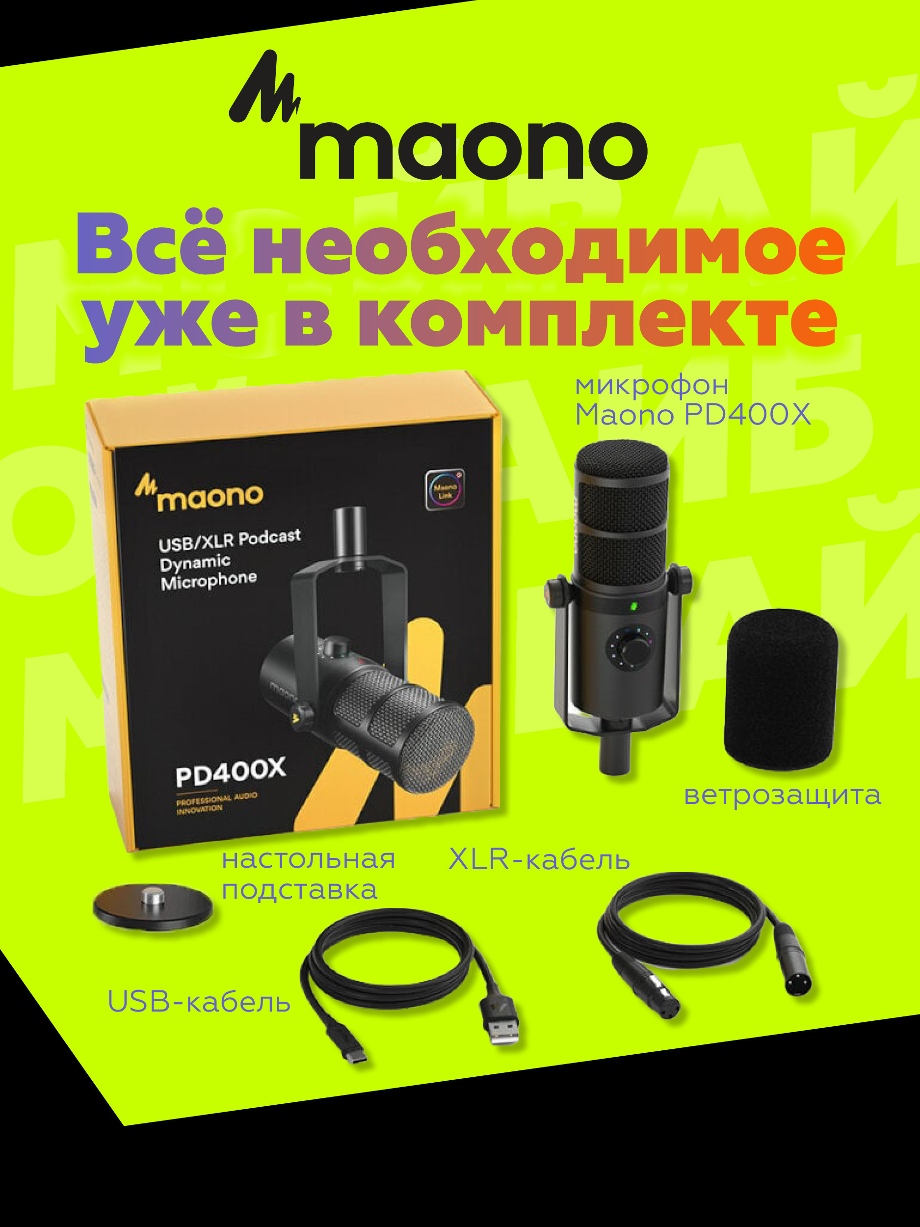 Maono PD400X – динамический кардиоидный микрофон с гибридным подключением USB-C/XLR, созданный для стриминга, подкастинга и записи речи. Обеспечивает богатый голосовой тембр, надёжно отсекая фоновый шум. Поддерживает 24-бит/48 кГц, оснащён сенсорной кнопкой mute, мониторингом в реальном времени и возможностью расширенной настройки через фирменное приложение Maono Link.