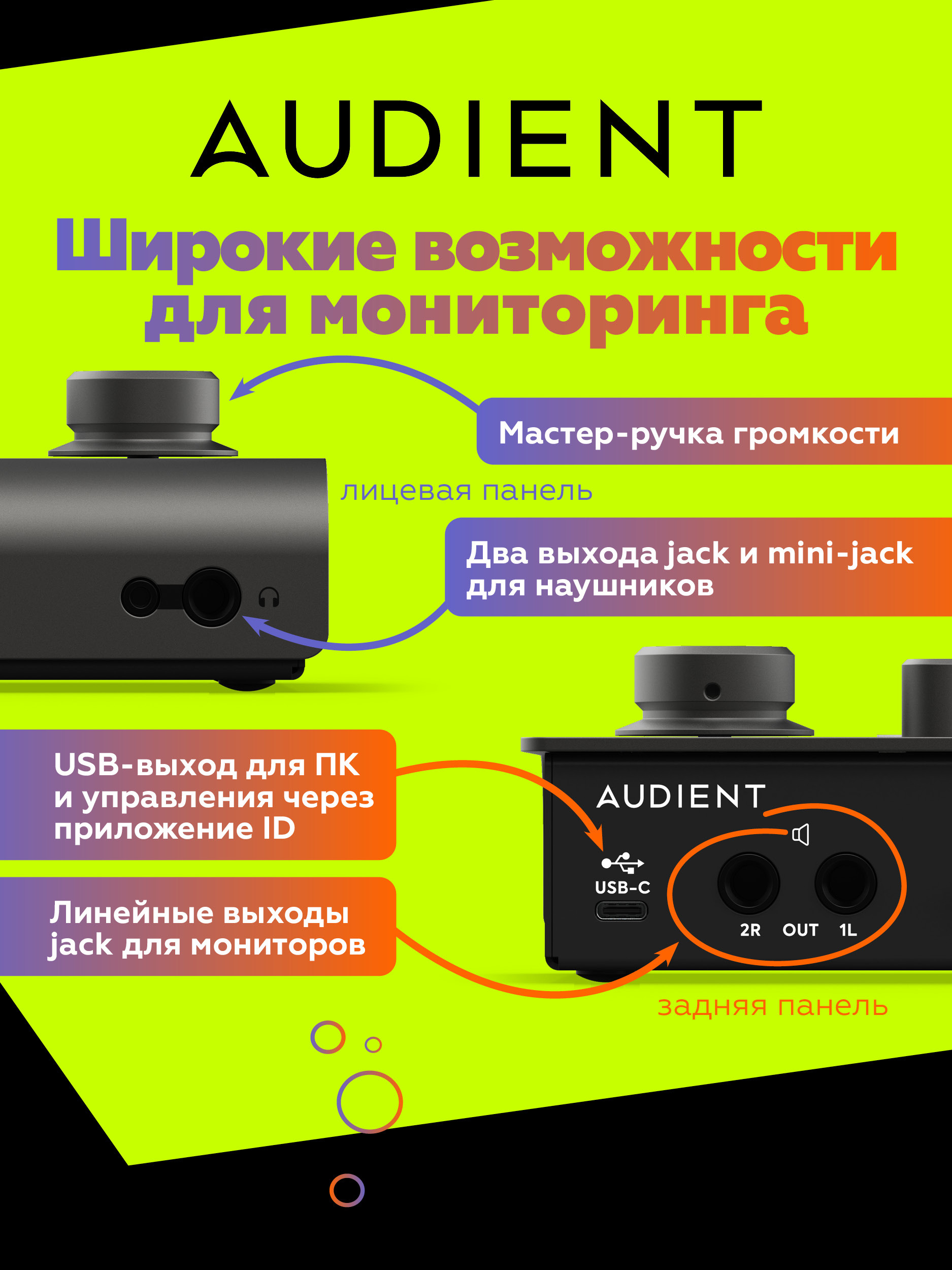 - Продюсерам и саунд-дизайнерам — точный контроль звука, чистые записи, удобный мониторинг.