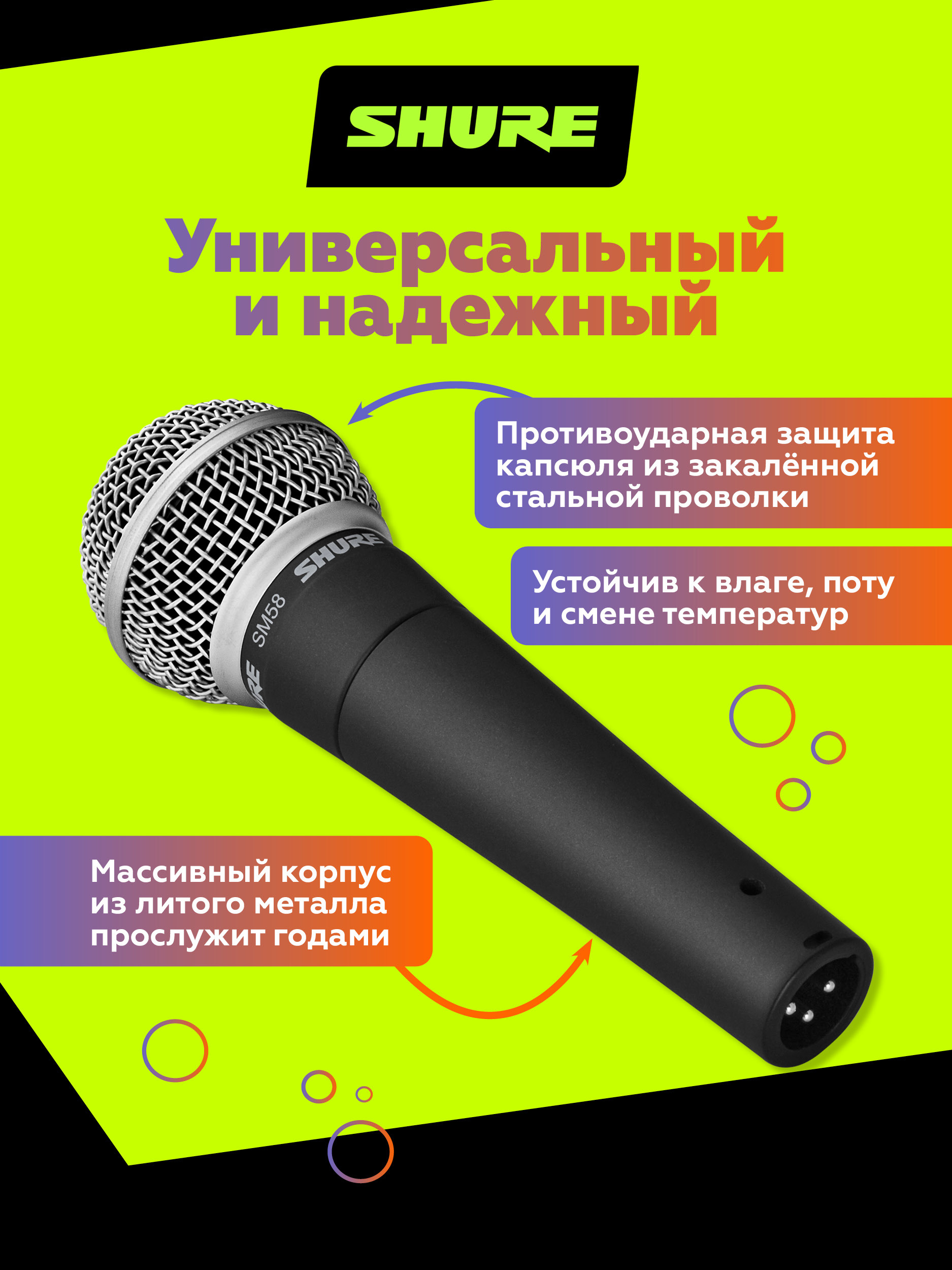 С 1966 года Shure SM58 остаётся мировым стандартом для вокала и речи. Это микрофон, которому доверяют миллионы музыкантов, ведущих и звукорежиссёров.
